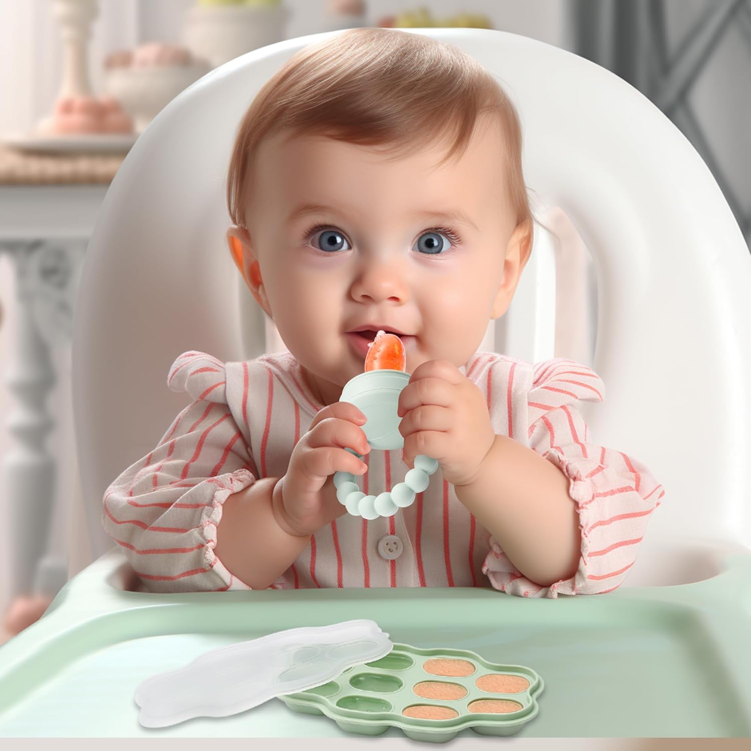 Nourrir votre bébé est devenu plus simple et plus sûr grâce à nos mangeoires en silicone. Leur conception bien pensée comporte des poches douces et perforées qui permettent aux jus de s'écouler tout en maintenant les morceaux solides en sécurité. Plus qu'un simple outil d'alimentation, c'est un soutien au développement de votre bébé. Ces mangeoires favorisent l'exploration des goûts et des textures de votre enfant tout en garantissant sa sécurité. Les poignées faciles à saisir favorisent la coordination et transforment l'heure du repas en une expérience amusante et éducative. Laissez votre bébé découvrir en toute sécurité les joies des nouveaux aliments.